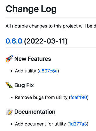 changelogPreset 필드를 이용하면 git commit message를 이용해 CHANGELOG를 자동으로 생성할 수 있다. 예시에서는 conventional-changelog-conventionalcommits 프리셋을 이용했다.