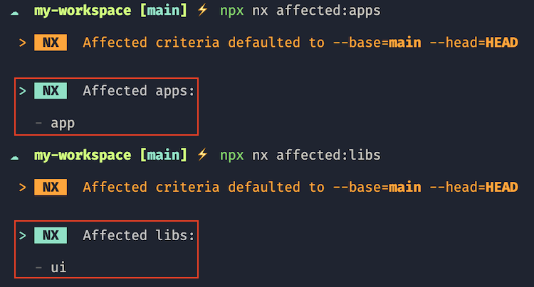- npx nx affected:libs: 수정한 부분이 어떤 라이브러리에 영향을 주었는지 표시한다.