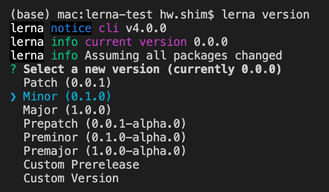 workspace에 변경을 가하고 나서 lerna version을 실행하면 각 workspace의 package.json에 명시된 버전을 자동으로 올리고 git에 tag를 남기고 변경에 대한 CHANGELOG도 작성한다.