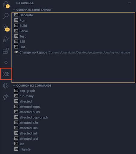 다음은 VS Code에 Nx Console을 설치한 모습이다.
